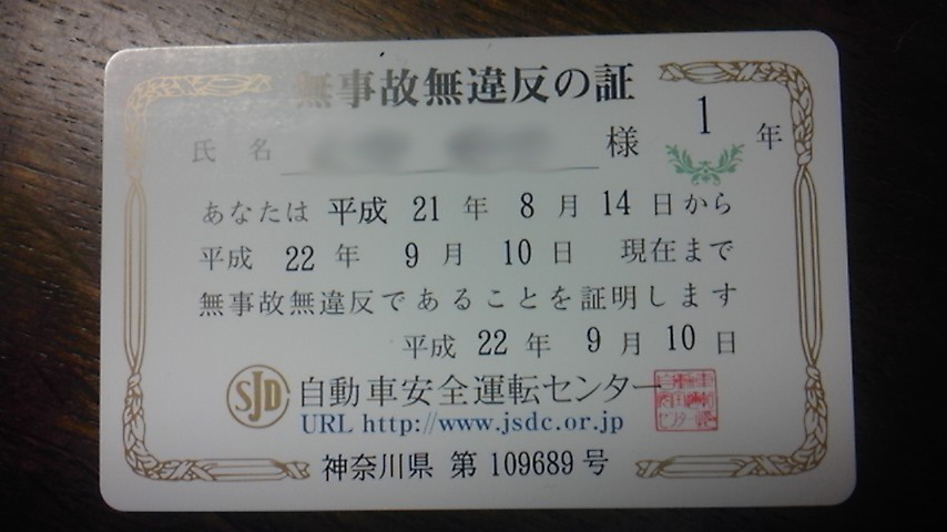 このたび、あなたが1年間無事故・無違反で過ごされた証といたしまして、SDカードが交付されることとなりましたので同封いたします。